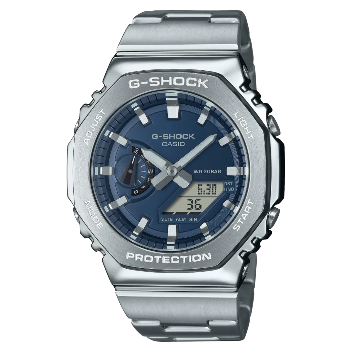 ساعت مچی G-Shock مدل GM-2110D-2B یکی از جدیدترین ساعتهای فلزی برند جیشاک است که با طراحی خاص و استیل براق، ترکیبی از دوام و زیبایی را ارائه میدهد. این مدل با صفحه سرمهای چشمنواز و قاب نقرهای درخشان، انتخابی ایدهآل برای استایل روزمره و اسپرت است.